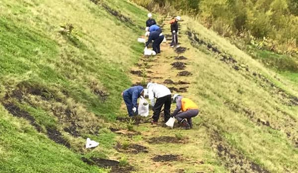 砕石業者としての責任を持ち、砕石場跡地の緑化を目的として毎年
