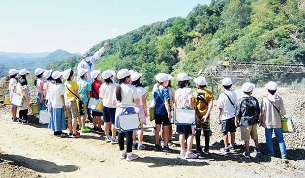 子ども達に学びを深めてもらうために、毎年採石場や大型建設機械の見学を受け入れています。